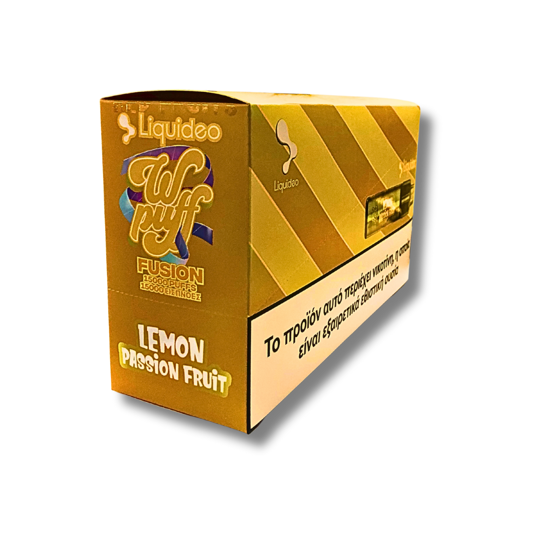 The Wpuff Fusion Passion Lemon blends the exotic sweetness of passion fruit with a citrusy lemon twist. This delightful and balanced mix gives you 15,000 puffs of fruity freshness. The Wpuff Fusion Passion Lemon offers a disposable vape that blends the exotic sweetness of passion fruit with the tangy freshness of lemon. With 15,000 puffs, this disposable e-cigarette provides a fresh and fruity vaping experience, perfect for those looking for a light and invigorating vape. Enjoy the perfect combination of exotic and citrus flavors.